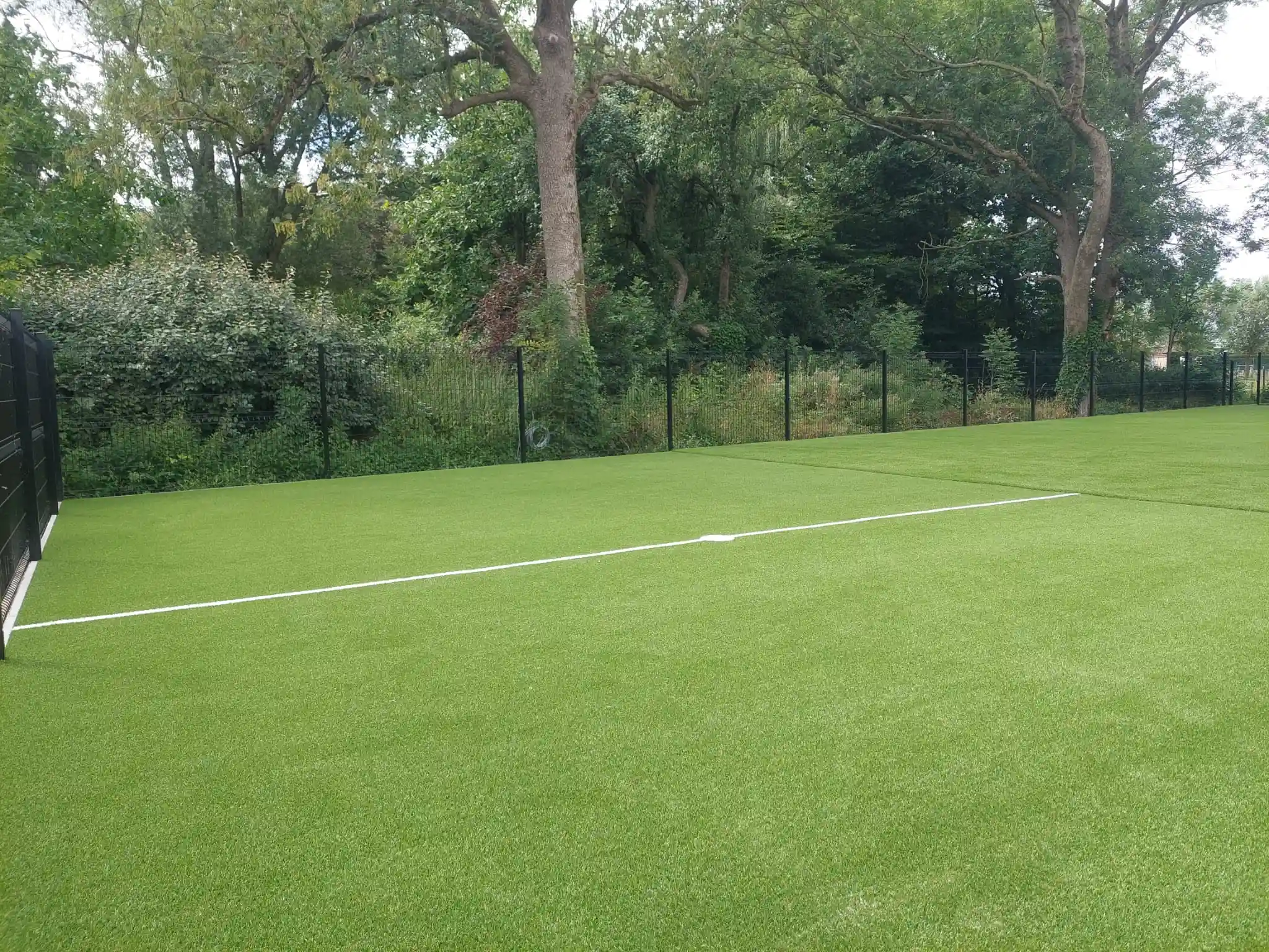De klant nam zelf het grootste deel van de grondwerken op zich, maar schakelde het Kunstgrascentrum in voor de essentiële fases: